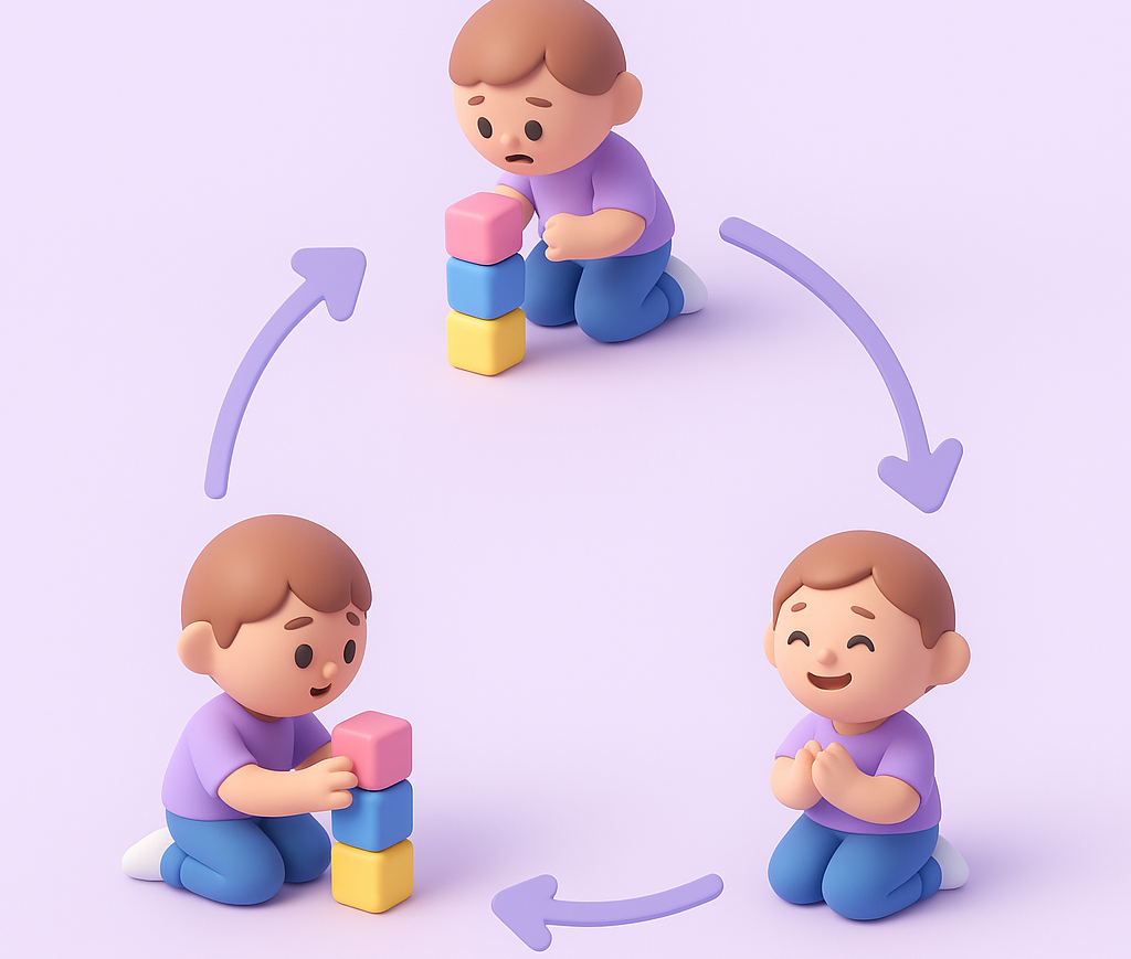 Where we sometimes get stuck is in wanting to help too much. When we jump in quickly or solve a problem for them, we interrupt the loop right when the learning is richest. Slowing down, stepping back, and letting kids feel a bit of productive struggle gives their confidence room to grow.